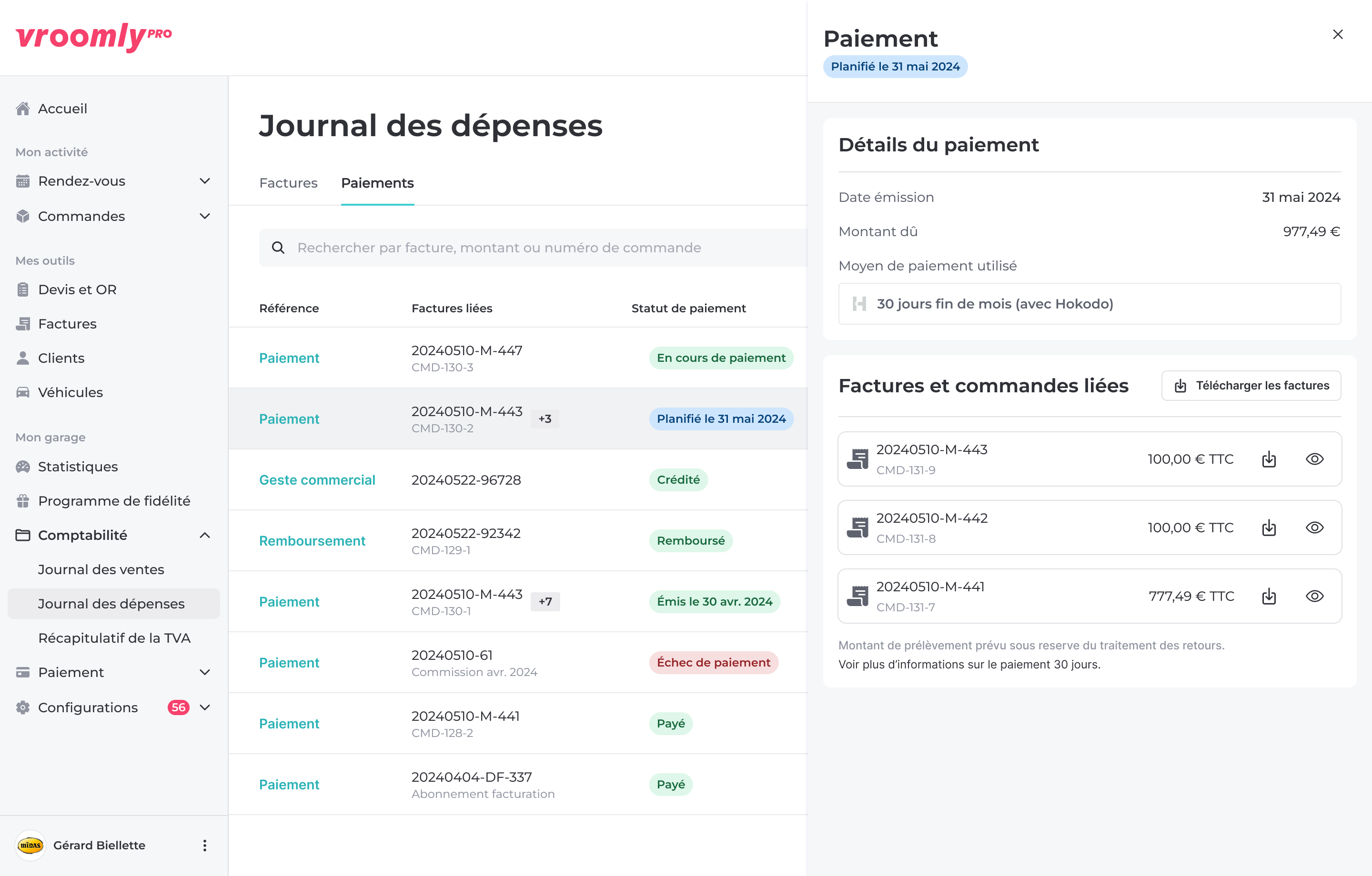 - Vous pouvez alors visualiser le paiement Hokodo qui sera prélevé à la fin du mois